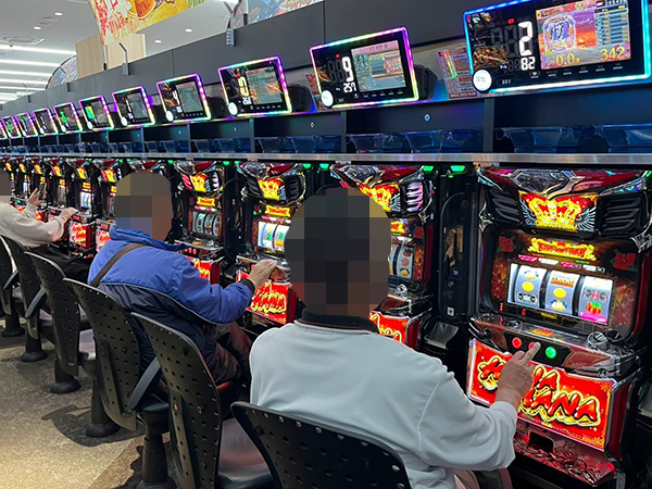 取材時は既に多くのプレイヤーであふれており、パチンコ・パチスロを問わず楽しげな表情でいっぱいだった。