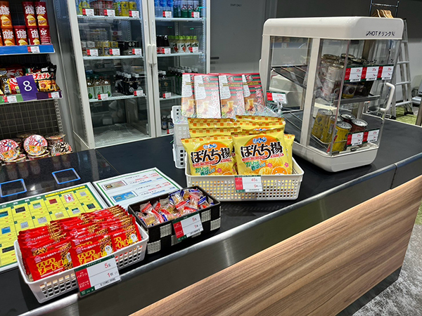 景品コーナーにはたくさんのお菓子やインスタント食品、ドリンク類が用意されており、プレイヤーから好評だった。