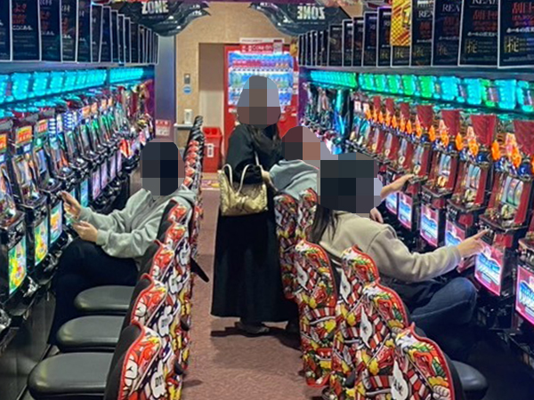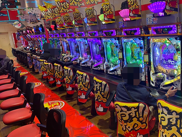 15時半ごろの4円パチンコでは「P大海物語5 ブラック」や「P大海物語4スペシャル」、「e Re:ゼロから始める異世界生活 season2」が人気で、プレイヤーの嬉しそうな表情を確認している。