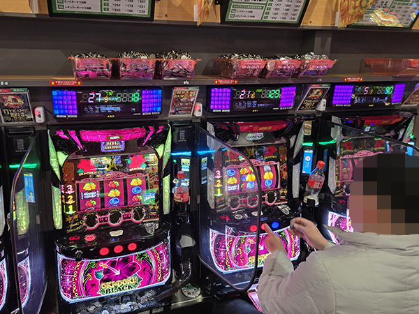 500円90枚パチスロの支持も厚く、様々な機種で楽しそうにレバーを叩くプレイヤーが見られた。