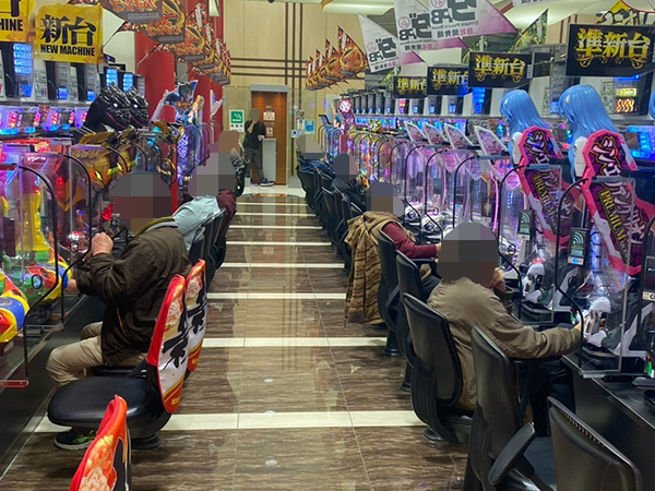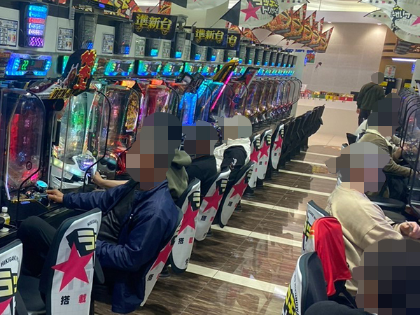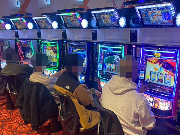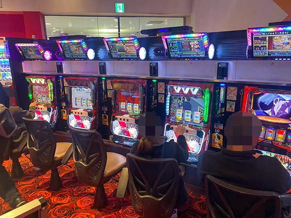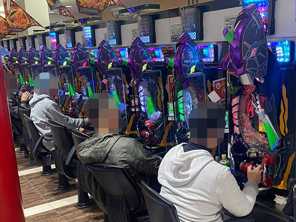 取材時は多くのプレイヤーが来店。パチンコ・パチスロともに、様々な機種が支持を得ていた。