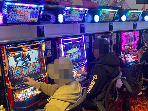 20円パチスロに目を向けると「スマスロ ゴッドイーター リザレクション」や「スマスロモンキーターンV」で華やかな光景が広がり、プレイヤーたちの笑顔から、納得の遊技をできていることがうかがえた。