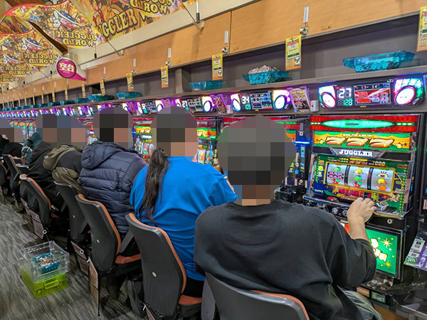 「アイムジャグラーEX」や「マイジャグラーⅤ」といったジャグラーシリーズ、「沖ドキ!BLACK」も活況で、魅力的なシーンを幾度も目撃している。