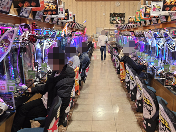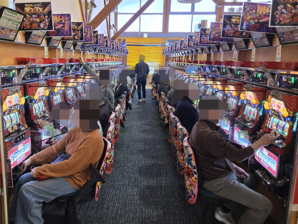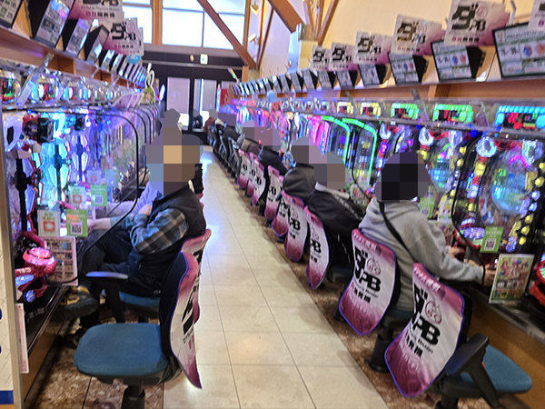 14時ごろの4円パチンコでは、「PA大海物語5ブラックLT99ver.」や「e ソードアート・オンライン 閃光の軌跡」といったラッキートリガー機でプレイヤーが華麗なパフォーマンスを披露。微笑ましいシーンを目にしている。