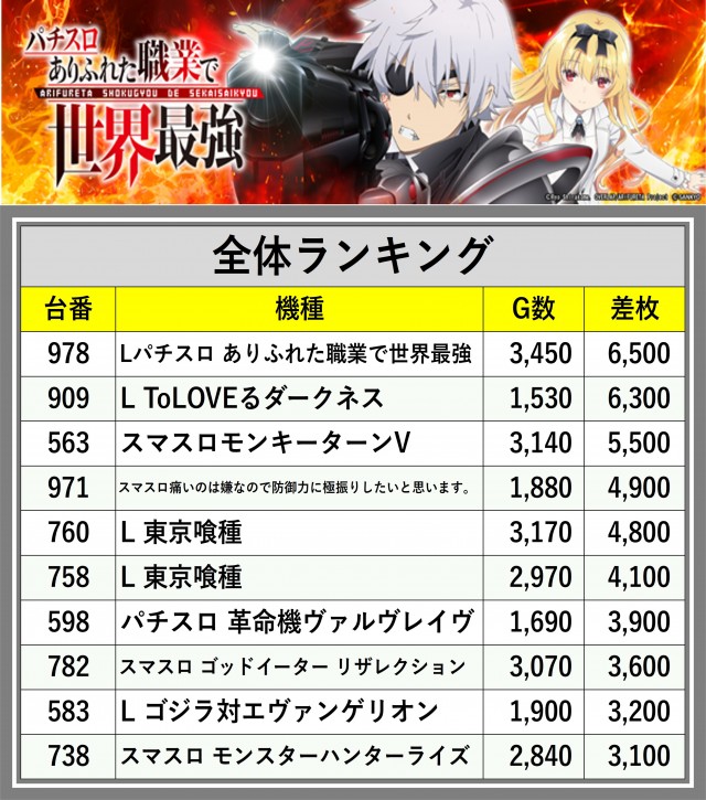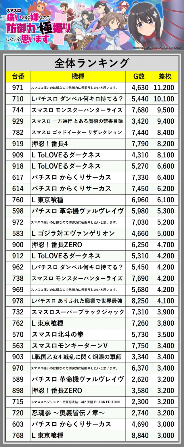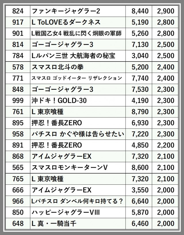 厳選された取材対象機種をはじめ、その他スロット全体から好記録が飛び出した!プレイヤーが楽しんだ1日を下記データにて振り返ってみて欲しい。