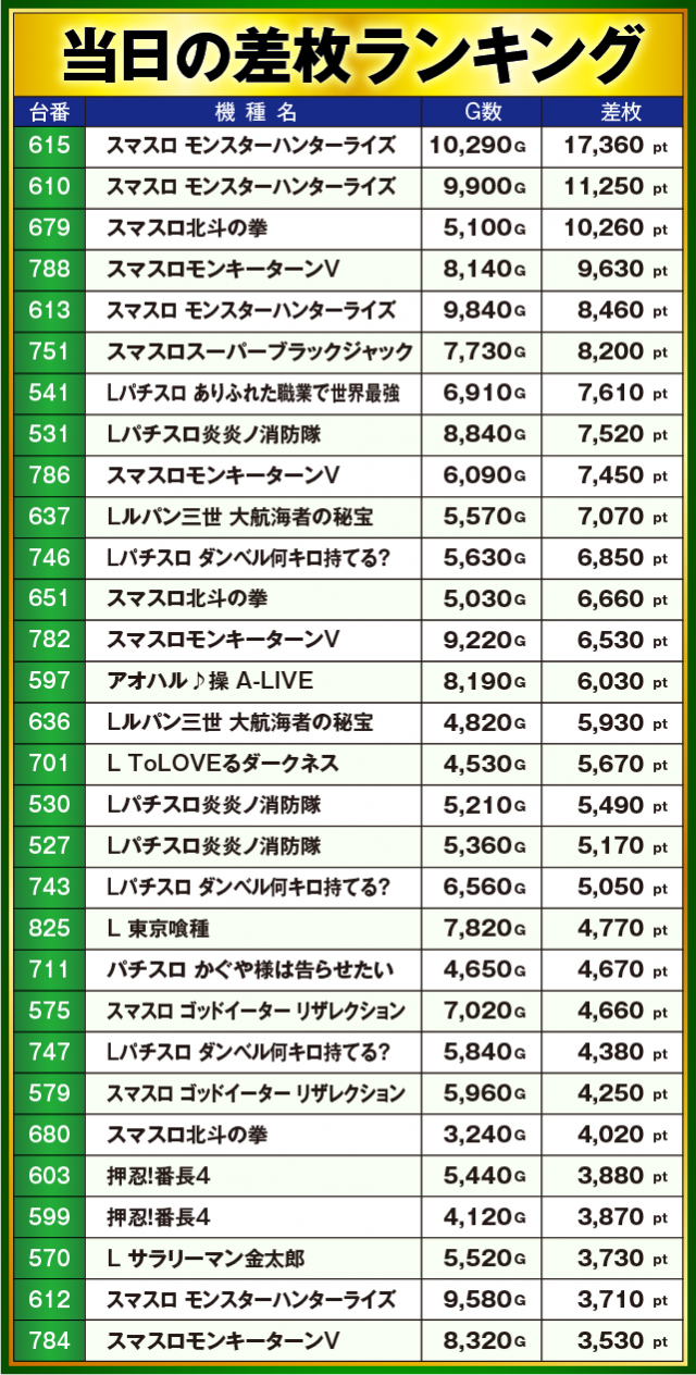 ※差枚数順に掲載しています