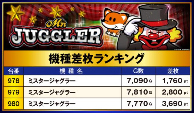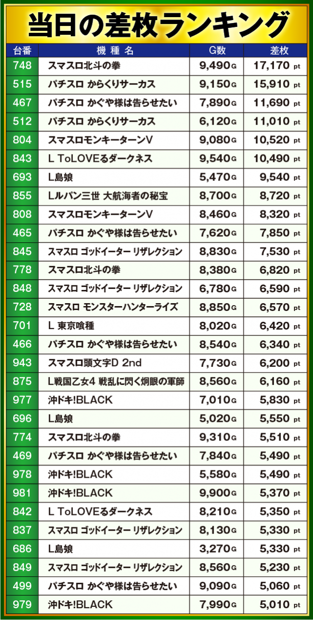 ※差枚数順に掲載しています
