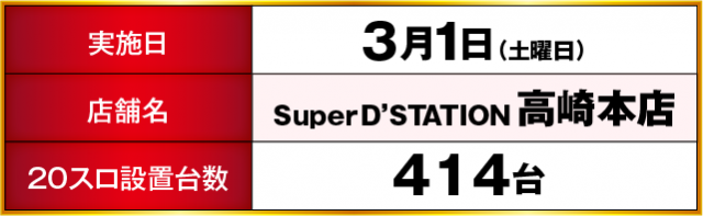 Super D’STATION高崎本店 差枚ランキング(3月1日)