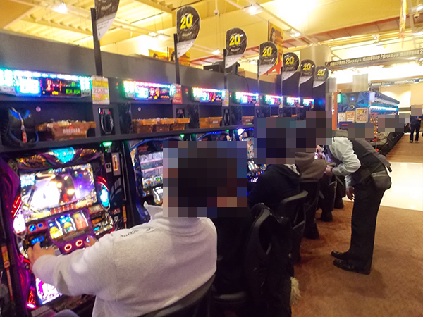 16時半ごろの20円パチスロでは、「バジリスク~甲賀忍法帖~絆」や「パチスロ攻殻機動隊S.A.C. 2nd GIG」、「押忍!番長2」などが盛況。