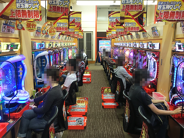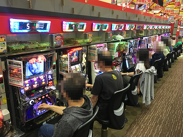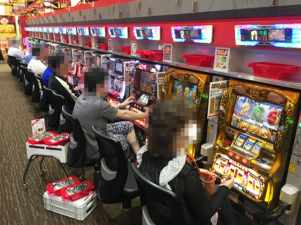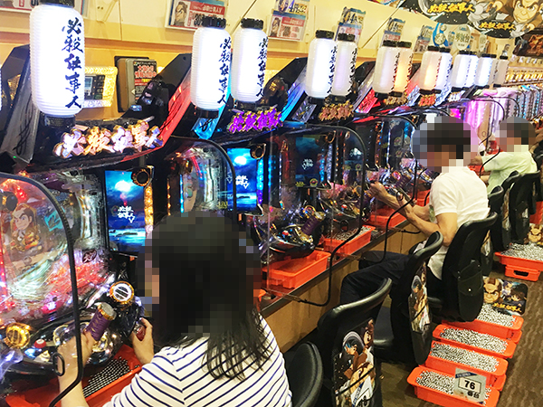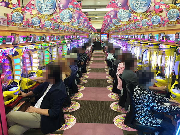 取材当日の店内には、既に多くのプレイヤーが集結。パチンコ・パチスロを問わず、にぎやかな雰囲気に包まれていた。