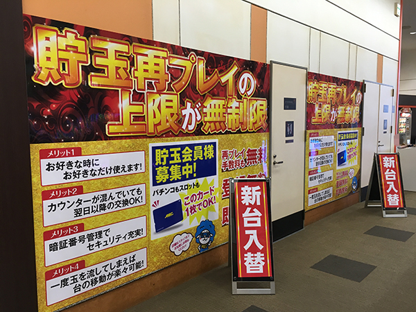 同店では貯玉・再プレイが無制限となっているため、台移動がスムーズにおこなうことができる。