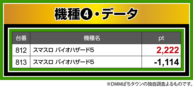 『スマスロ バイオハザード5』では、812番台が2,222ptを記録。