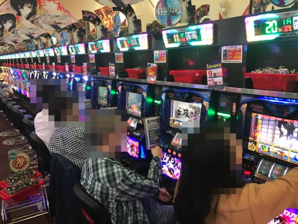 5円パチスロでは、「ミリオンゴッド-神々の凱旋-」と「SLOTバジリスク~甲賀忍法帖~Ⅲ」にて満面の笑みが見られた。いたる所で笑顔が見られ、有意義な時間をすごせていることが伝わってきた。