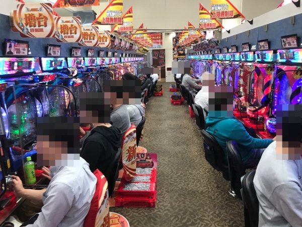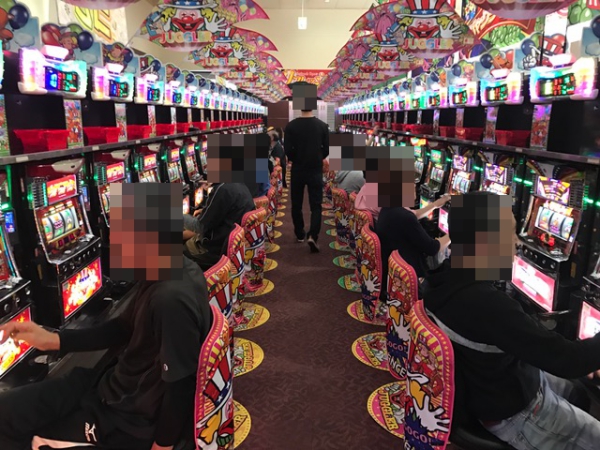 大型の駐車場を完備しているため、車でも来店しやすい印象を受けるホールだ。多数のプレイヤーが遊技を楽しんでいるホール内は、活気づいていた。