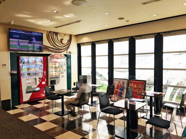 店内は、レストコーナーがすっきりと整頓されており、大型TVや漫画があることで遊技の合間にリラックスできる空間となっている。