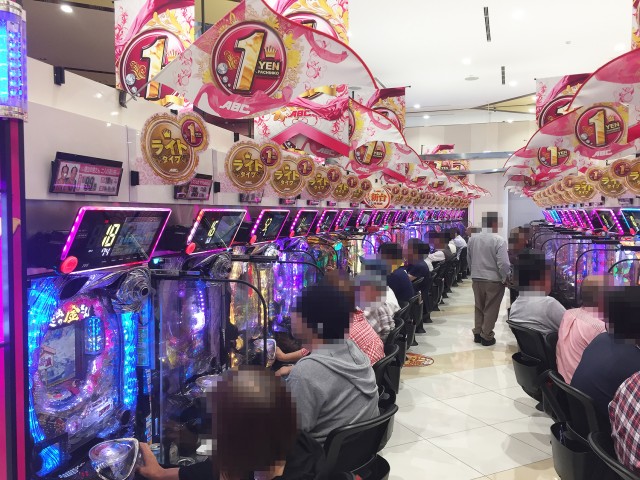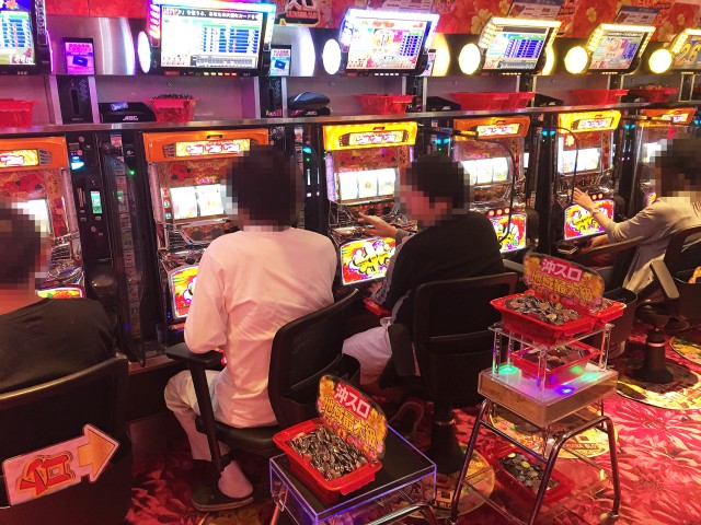低貸し玉コーナーはパチンコ・パチスロを問わず、空き台を見つけるのが困難なほどの盛況ぶり。プレイヤーたちは好みの機種を探し当て、心から遊技を楽しんでいた。