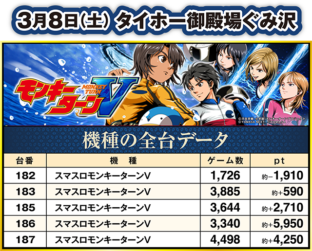 タイホー御殿場大坂でピックアップしたのは、全台がプラスとなった「スマスロモンキーターンV」。