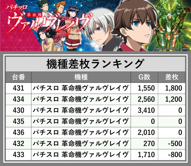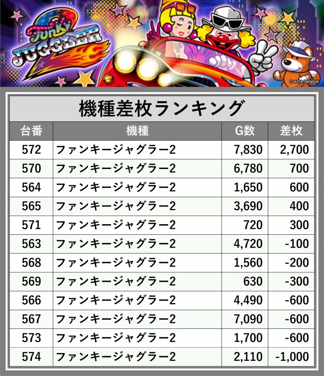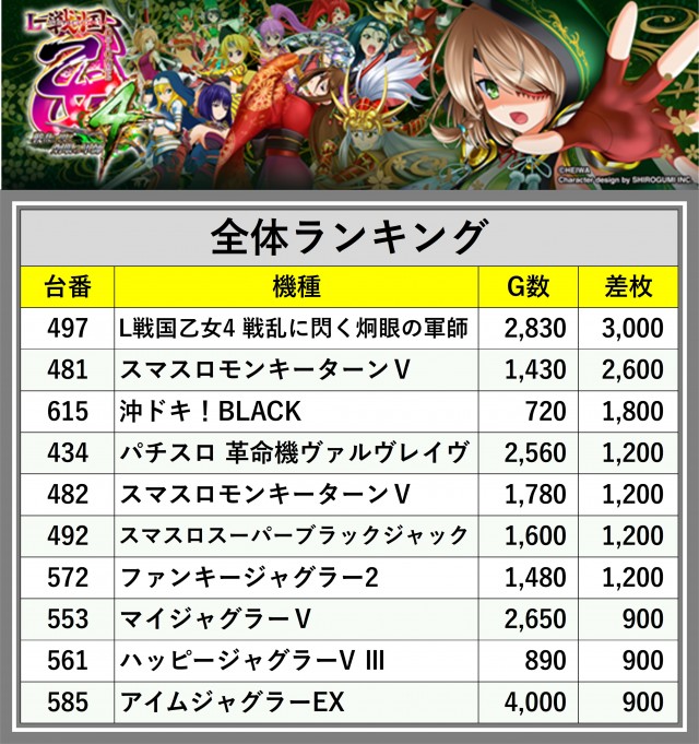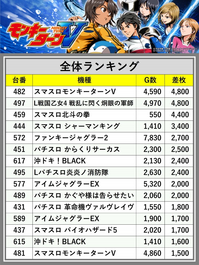 ※差枚数順に掲載しています