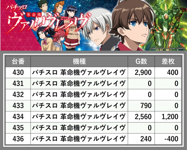 ※台番順に掲載しています