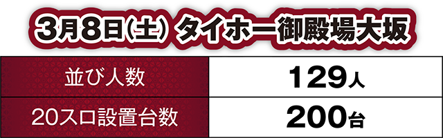 3月8日、大一番に挑んだホールは、「タイホー御殿場大坂」と「タイホー御殿場ぐみ沢」、「タイホー高丘」と「タイホー浜松三幸町」だ。