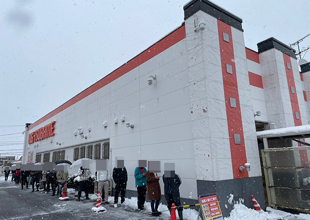 この日は雪が降っていたが、開店前からたくさんのプレイヤーが集まっていた。