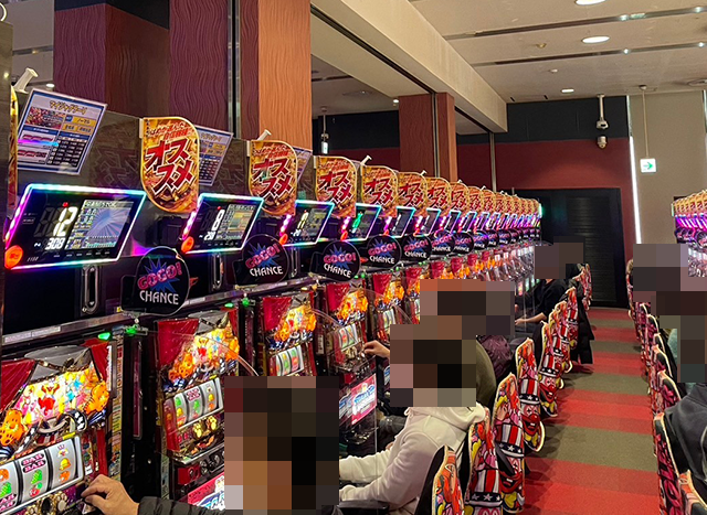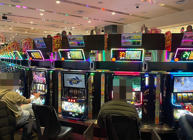 「マイジャグラーⅤ」や「アイムジャグラーEX」などに笑顔のプレイヤーがおり、雰囲気は明るかった。