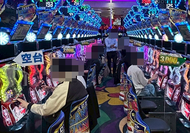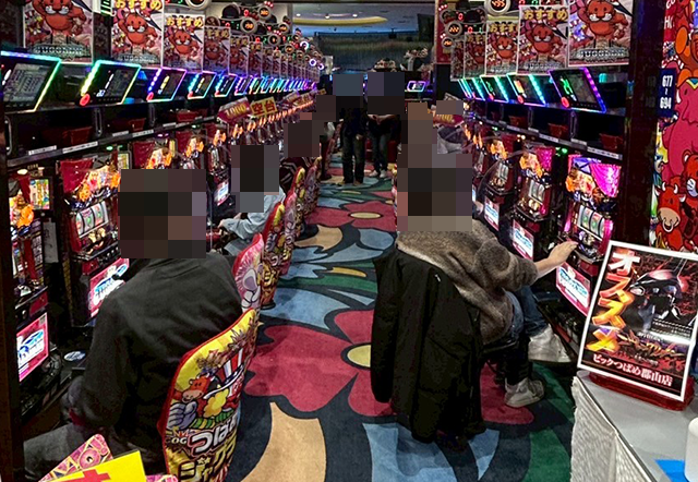 持ち玉で遊技をおこなっている姿が多く、どちらの機種にも3,000ptを超えている台があった。