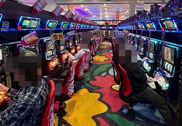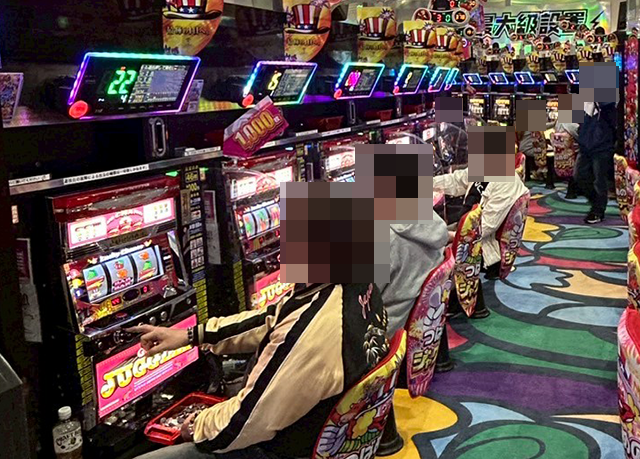 「マイジャグラーⅤ」や「ゴーゴージャグラー3」では、プレイヤーたちが遊技を堪能中。