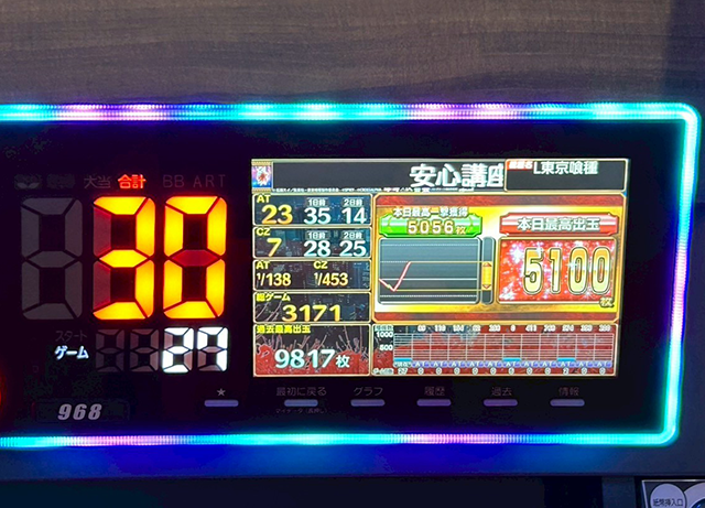 「東京喰種」も3台の出玉が5,000pt超と、目立つ機種のひとつとなっていた。