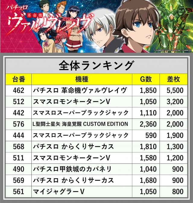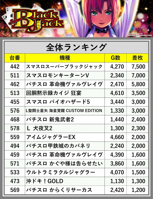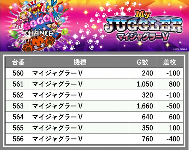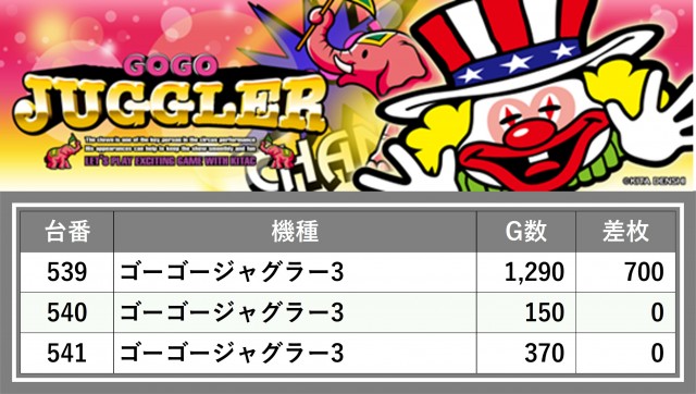 厳選された取材対象機種をはじめ、その他スロット全体から好記録が飛び出した!プレイヤーが楽しんだ1日を下記データにて振り返ってみて欲しい。