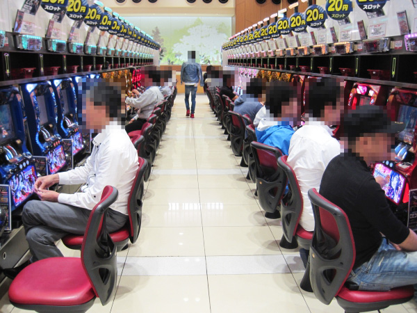 14時頃の20円パチスロをみると、朝から引き続き「バジリスク〜甲賀忍法帖〜絆」と「パチスロ獣王王者の覚醒」が盛況。目をひくようなパフォーマンスを披露しているプレイヤーが多く、鮮やかな光景だった。