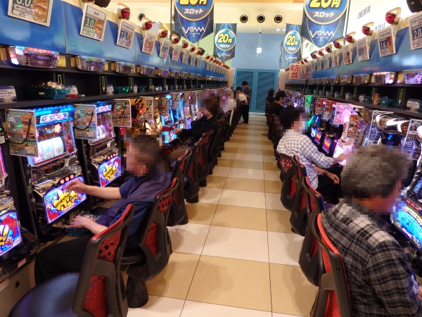 開店時の20円パチスロでは、イチ早く「押忍!番長3」が満席になった。ほかには「沖ドキ!-30」やジャグラーシリーズが人気を集めていた。