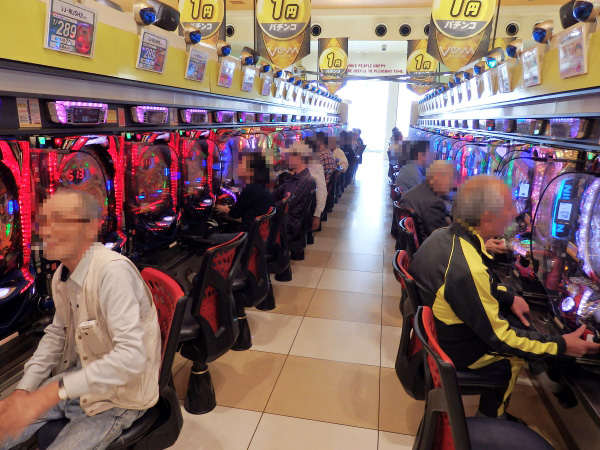 1円パチンコの低貸し玉コーナーはオールタイムで盛り上がっていた。海物語シリーズを筆頭に、楽しそうにパチンコを満喫しているプレイヤーの姿がとても印象的だった。