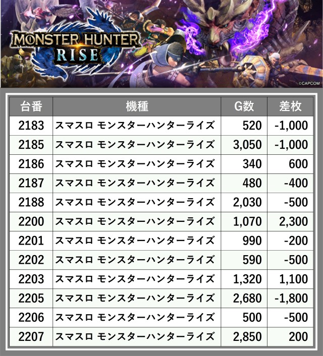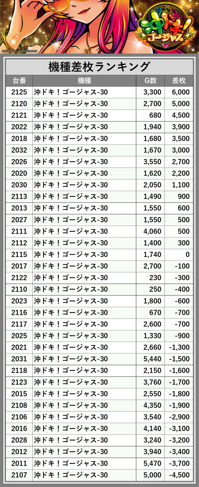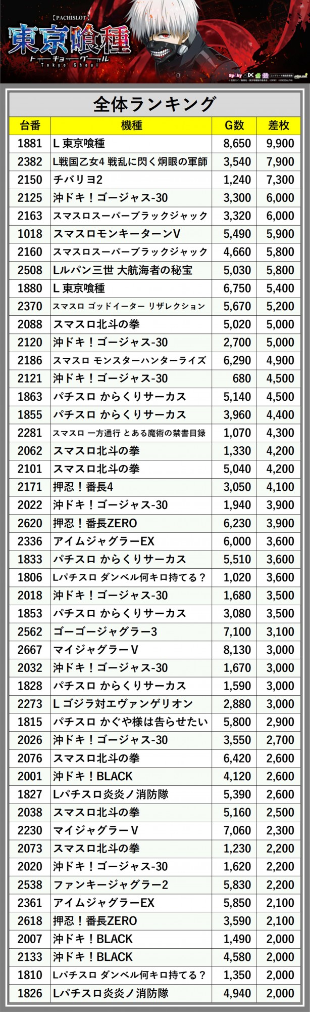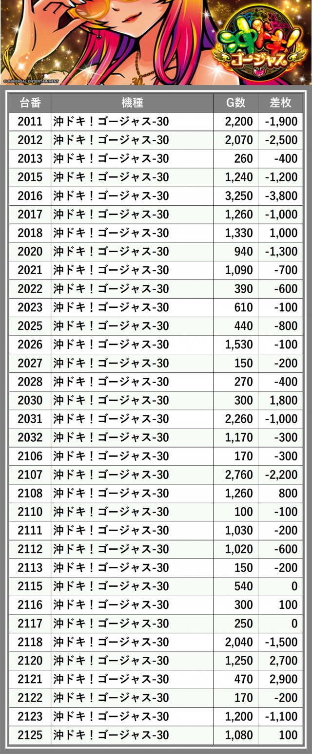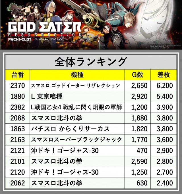 厳選された取材対象機種をはじめ、その他スロット全体から好記録が飛び出した!プレイヤーが楽しんだ1日を下記データにて振り返ってみて欲しい。