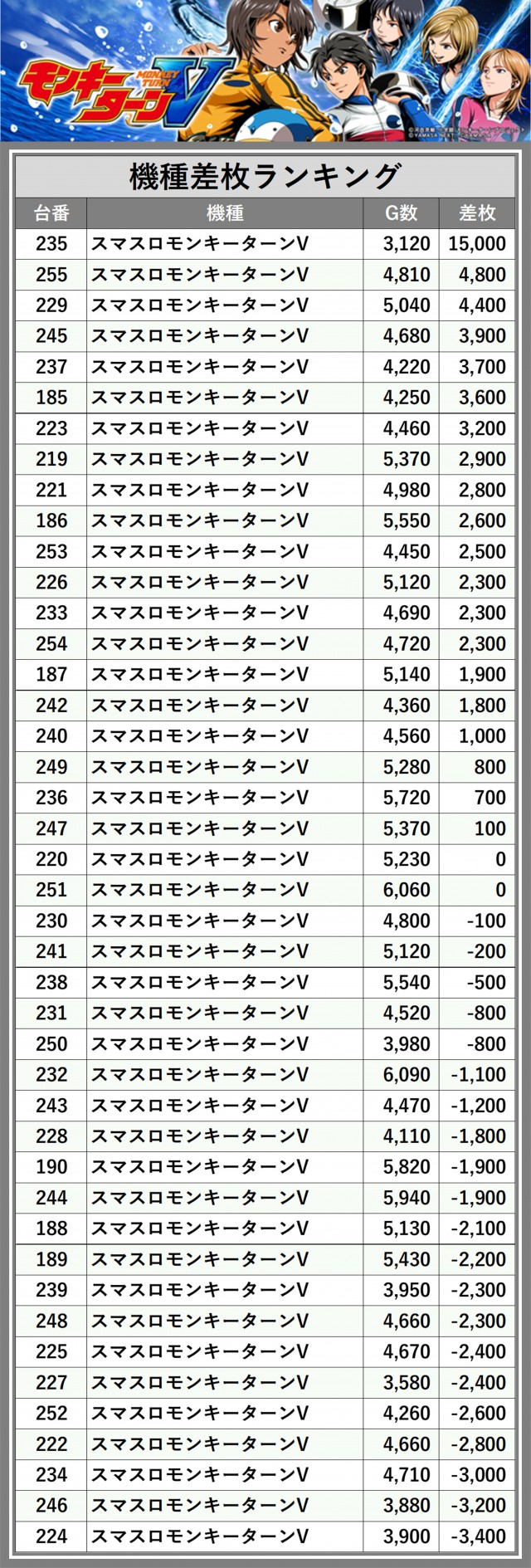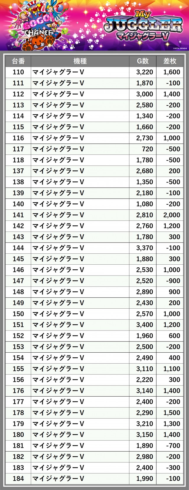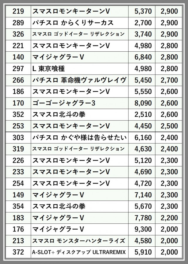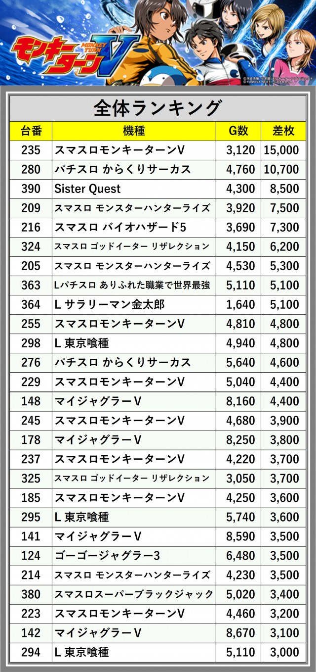 厳選された取材対象機種をはじめ、その他スロット全体から好記録が飛び出した!プレイヤーが楽しんだ1日を下記データにて振り返ってみて欲しい。