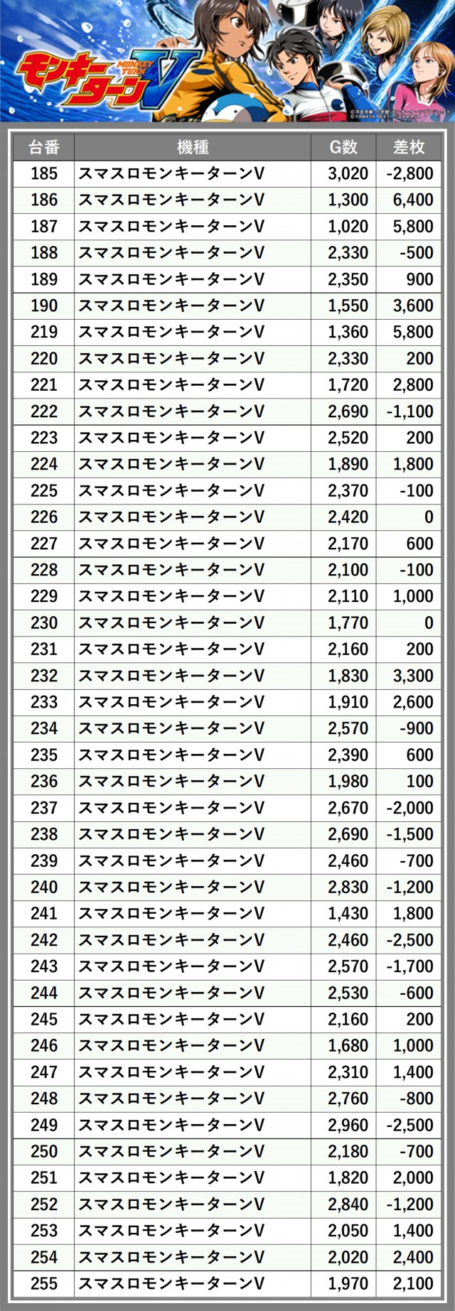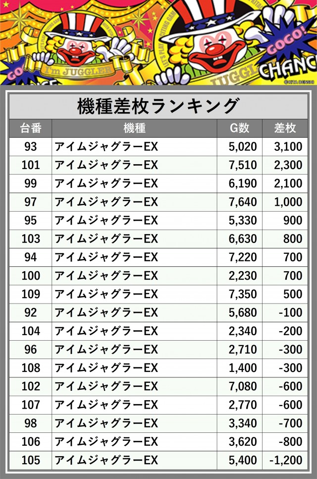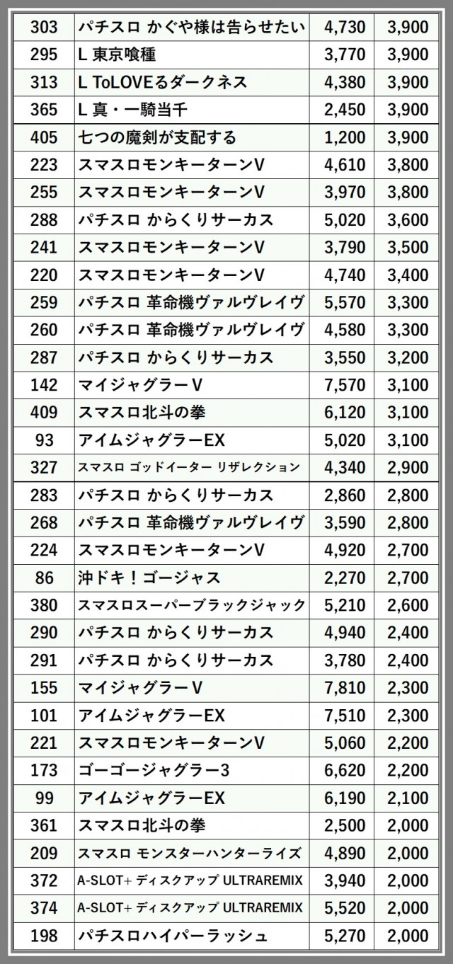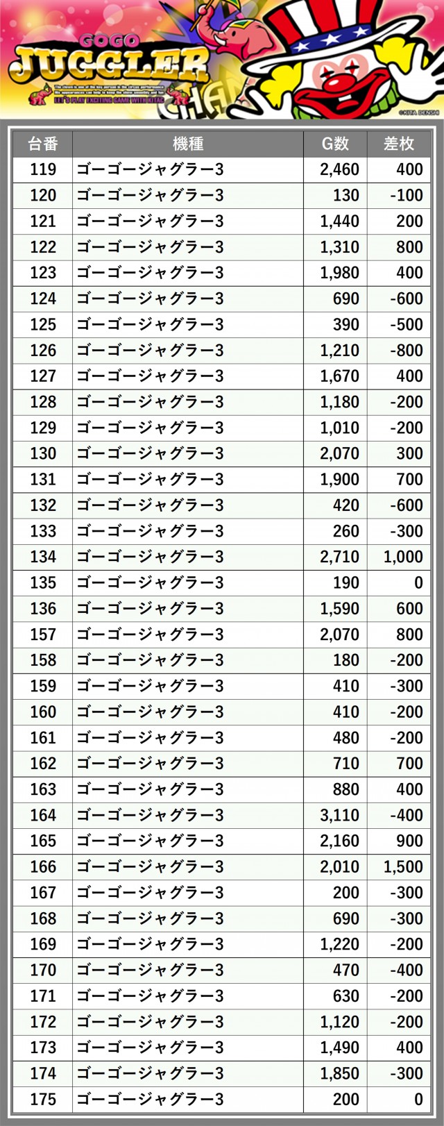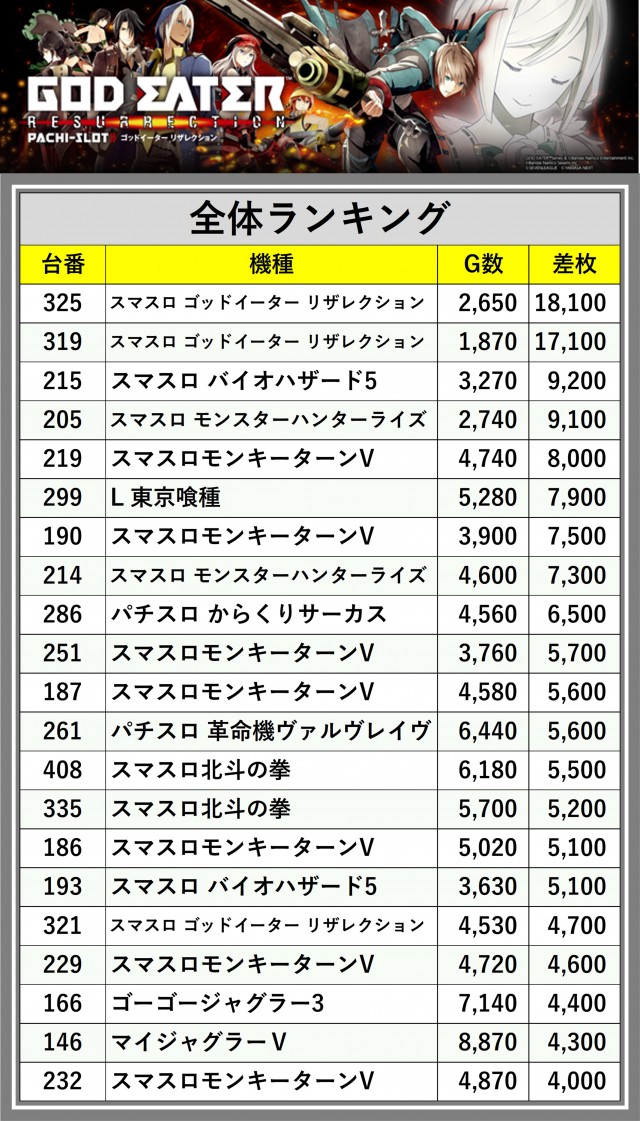 厳選された取材対象機種をはじめ、その他スロット全体から好記録が飛び出した!プレイヤーが楽しんだ1日を下記データにて振り返ってみて欲しい。