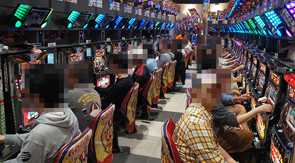 1円パチンコの支持も厚く、空き台は少ない。