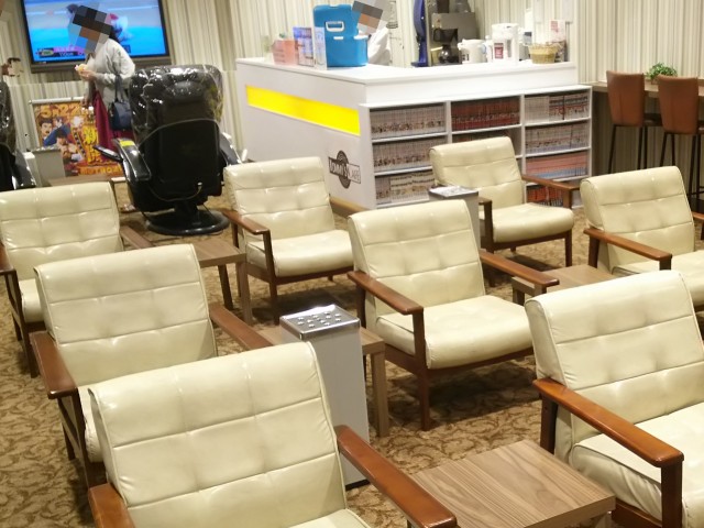 マッサージチェアや幅広いジャンルが取り揃えられたレストスペースはプレイヤーに好評。すみずみまで清潔に保たれているため、居心地も良い。