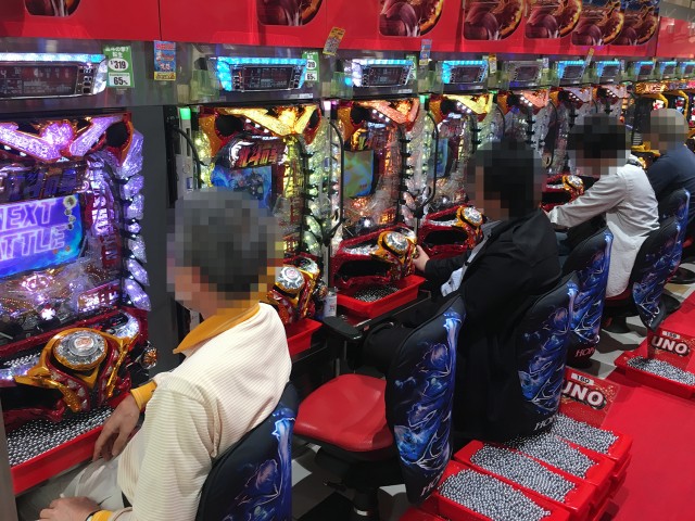 低貸し玉コーナーはパチンコ・パチスロ共に支持が厚く、シマ全体の動きは活発。目移りするような多彩な機種の中から、プレイヤーは自分のお気に入りを選んで楽しんでいた。