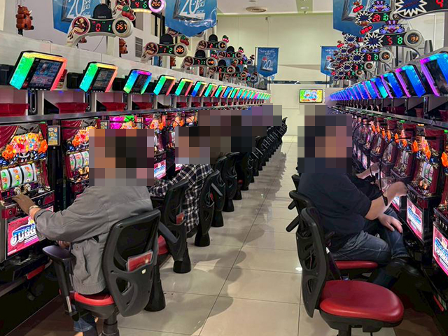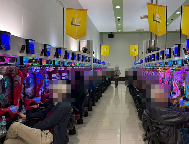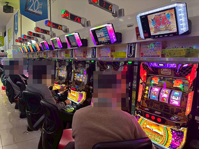 はじめにパチスロをみてみると、さまざまな機種に、楽しそうに遊技をおこなっているプレイヤーの姿があった。