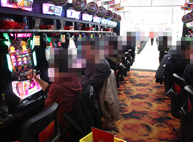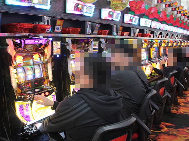 「マイジャグラーⅤ」で遊技をおこなっているプレイヤーも多く、にぎやかな光景をみられた。