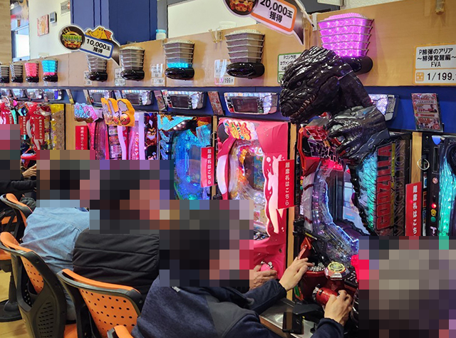 取材時に、「P真・怪獣王ゴジラ2」や「Pブラックラグーン4」など、多くの台がすでに10,000ptオーバー。
