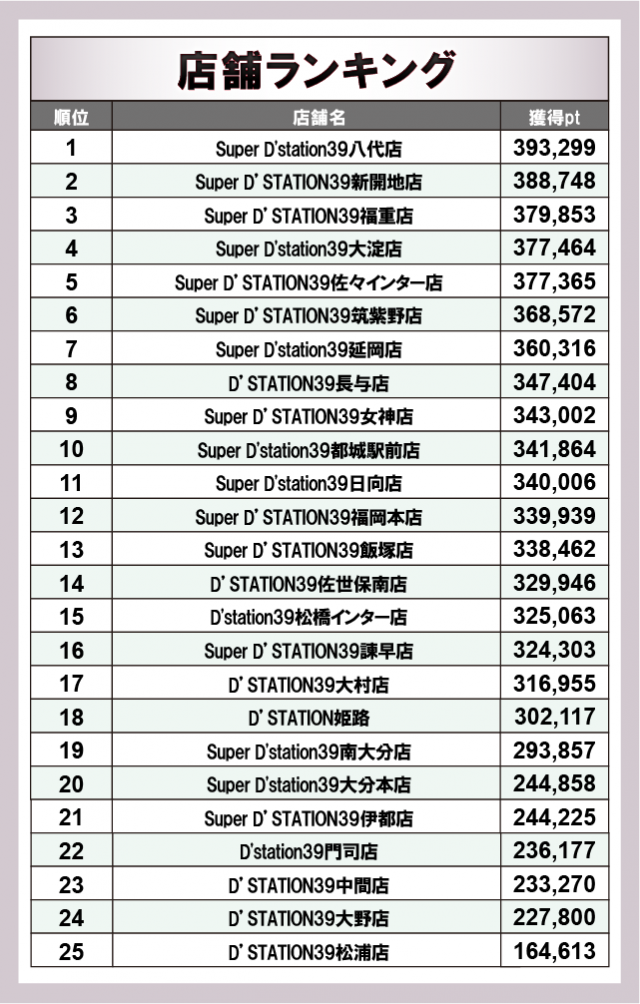 ※『獲得pt』は差玉ではなく独自算出によるポイント数です。