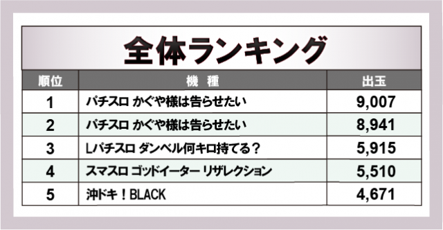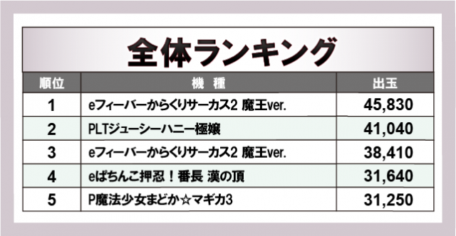 ※出玉数順に掲載しています
