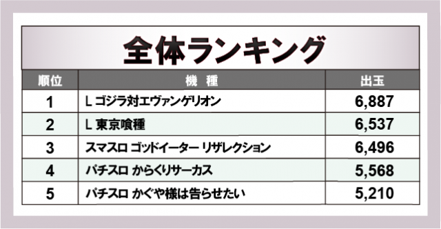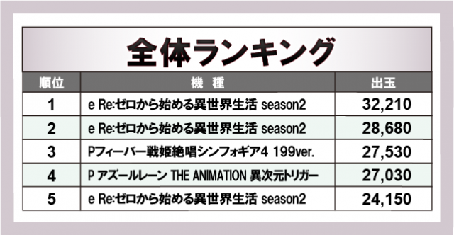 ※出玉数順に掲載しています