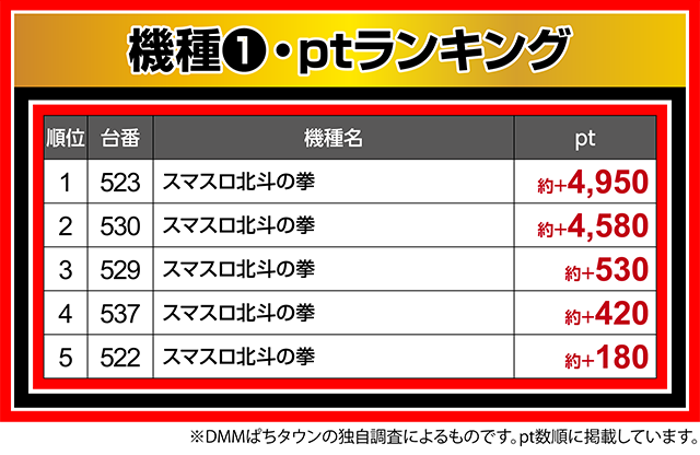 『スマスロ北斗の拳』の523番台と530番台が約+4,500ptオーバー!!