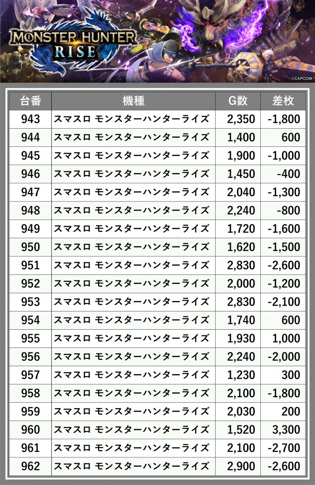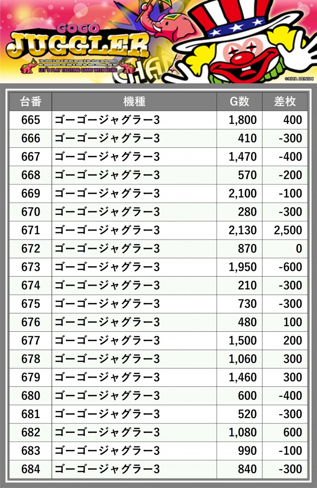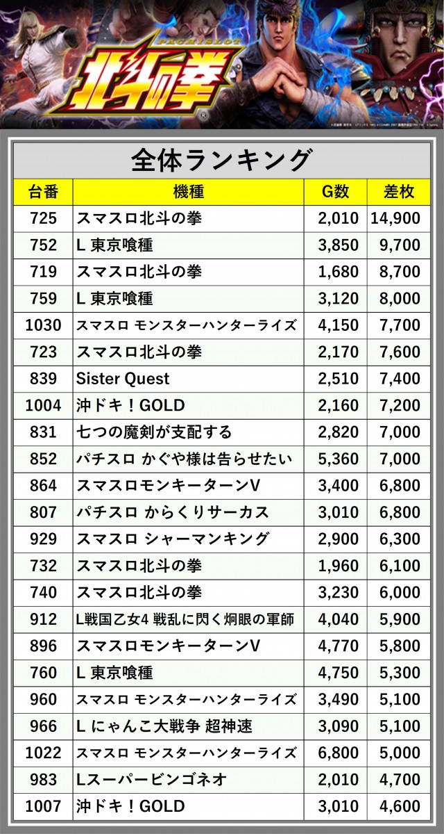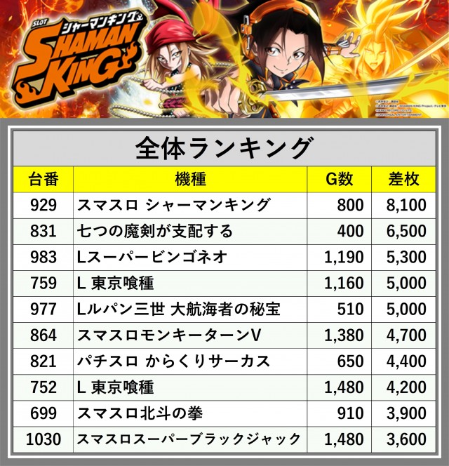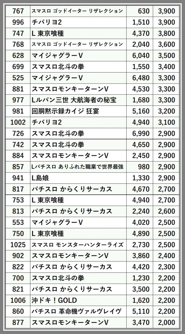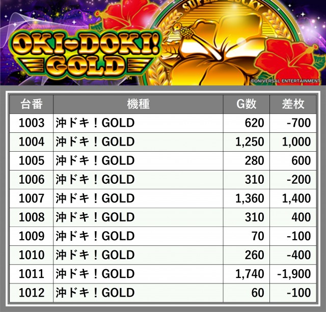 厳選された取材対象機種をはじめ、その他スロット全体から好記録が飛び出した!プレイヤーが楽しんだ1日を下記データにて振り返ってみて欲しい。
