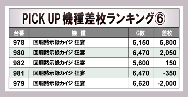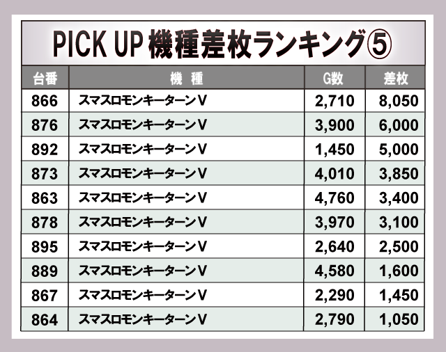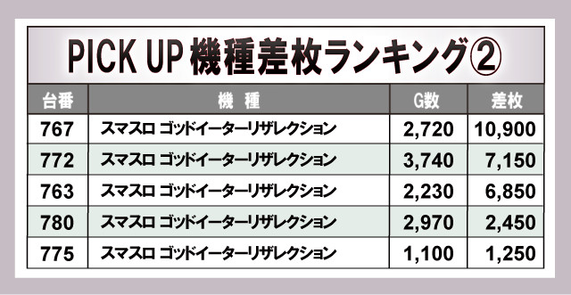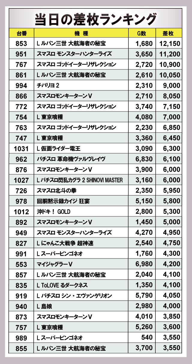 ※差枚数順に掲載しています。