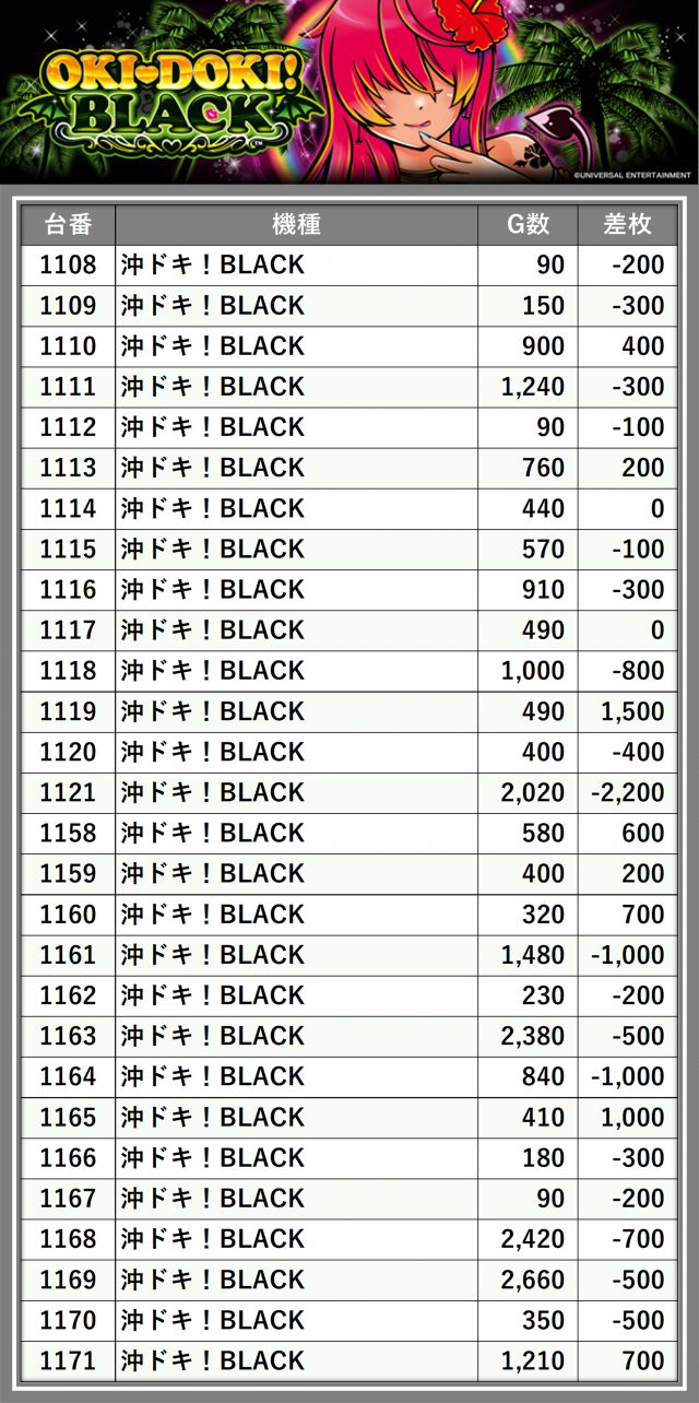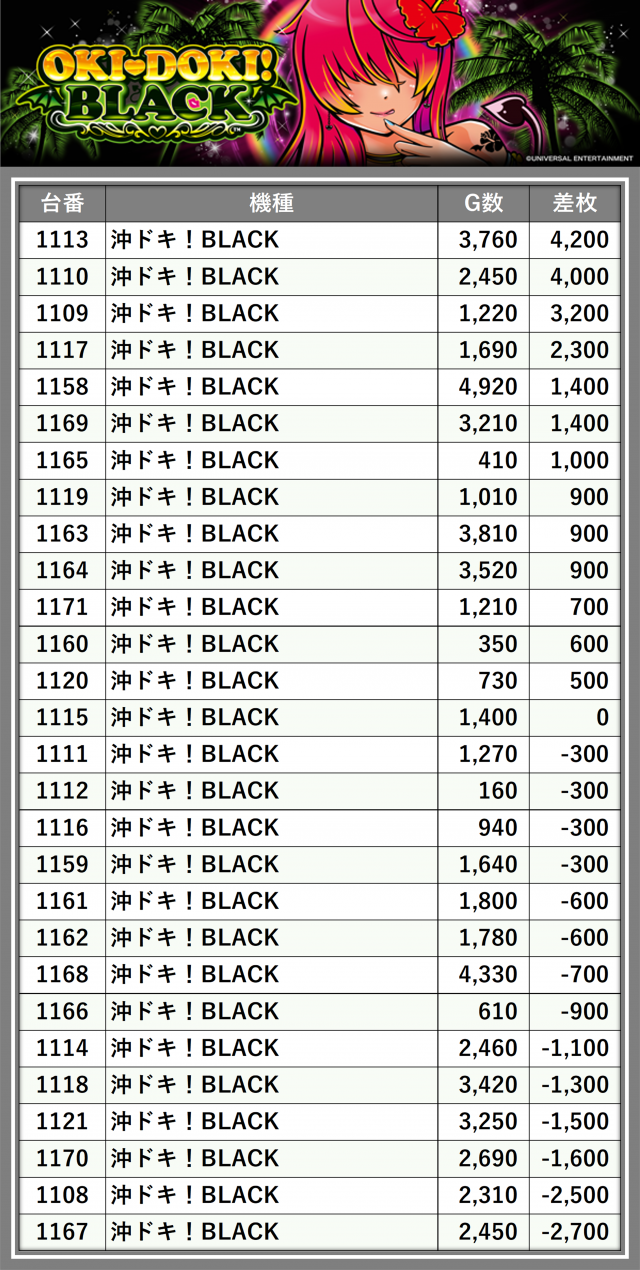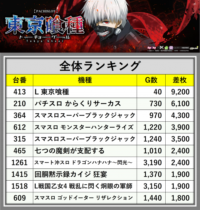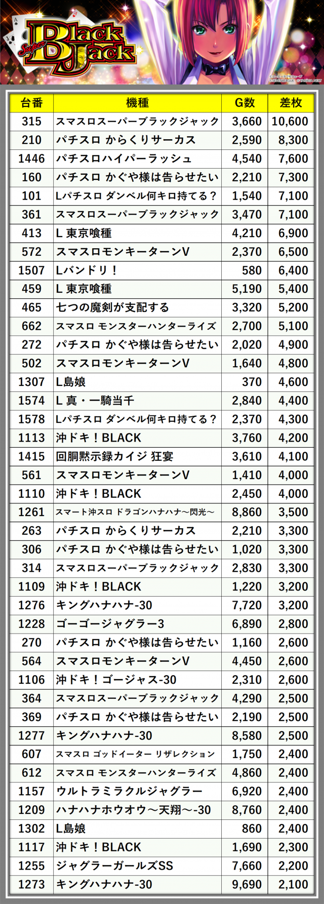 ※差枚数順に掲載しています