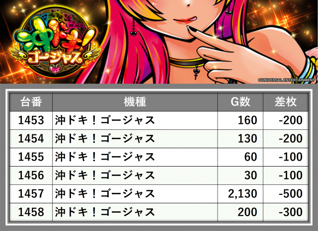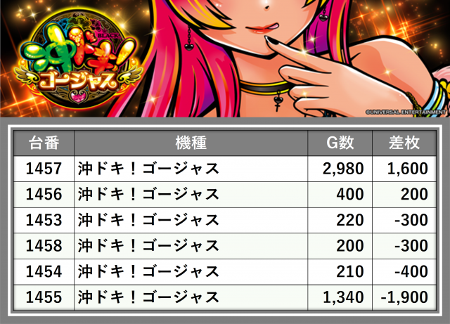 厳選された取材対象機種をはじめ、その他スロット全体から好記録が飛び出した!プレイヤーが楽しんだ1日を下記データにて振り返ってみて欲しい。